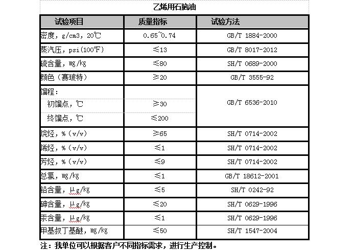 我單位生產(chǎn)石腦油分為兩類,乙烯用石腦油和重整用石腦油。產(chǎn)品用途:石腦油是管式爐裂解制取乙烯,丙烯,催化重整制取苯,甲苯,二甲苯的重要原料。該產(chǎn)品烷烴、環(huán)烷烴含量高,安定性能好,重金屬含量低,硫含量低,毒性小。